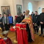 Поучаствовав в Богослужении ребята попросили благословение у настоятеля храма протоиерея Луки Захарчука на грядущие пробные экзамены.